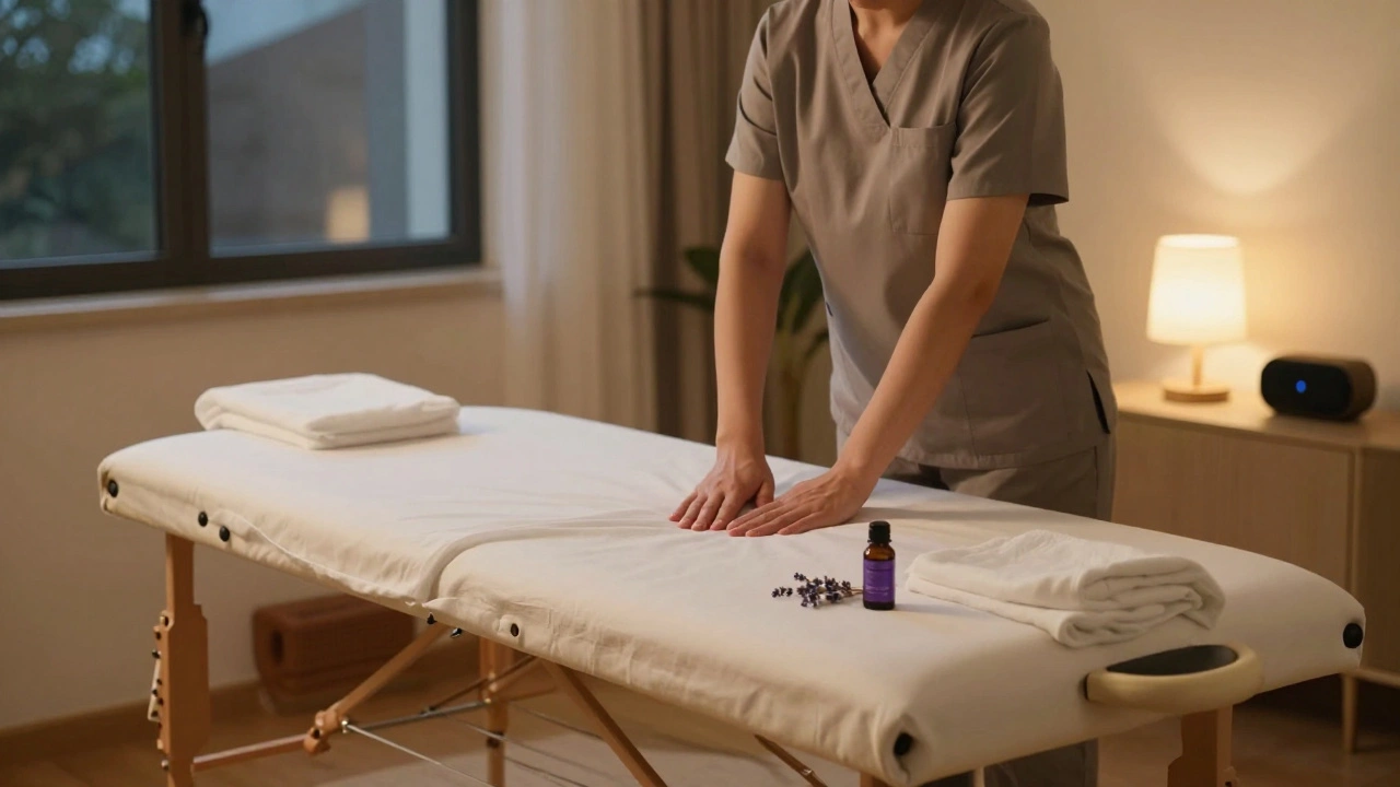 Your space becomes the treatment room. The therapist arrives with a lightweight, foldable table, clean linens, and a small kit of oils and towels. They’ll ask where you’d prefer to lie down-bed, sofa, or floor mat. Most people choose the bedroom for quiet and warmth. They’ll set up quickly, dim the lights, and play soft music if you like. The whole setup takes under 10 minutes. You’re not expected to clean or prepare. Just be ready to relax.