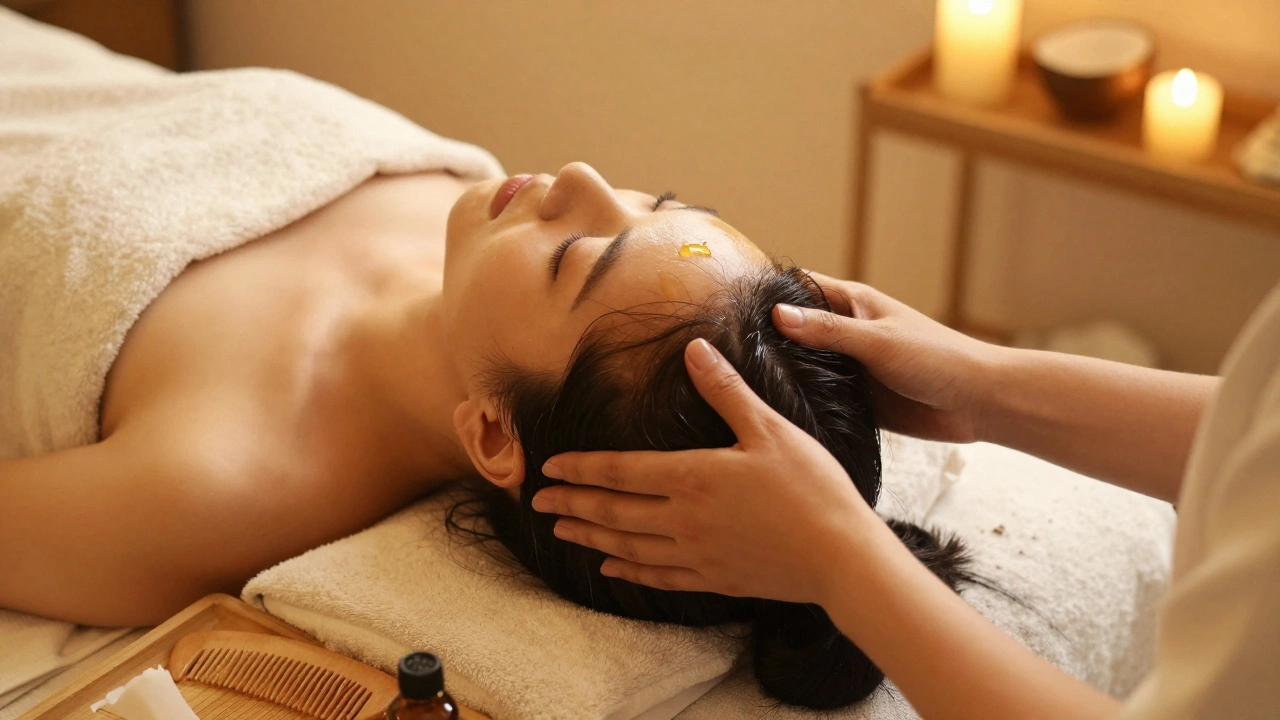The technique focuses on three key areas: the scalp, the face, and the upper back and shoulders. Unlike Swedish massage, which works large muscle groups, Indian head massage targets pressure points, hair follicles, and the connective tissue around the skull. The oil acts as a carrier-helping the hands glide smoothly, but more importantly, allowing herbal and botanical properties to penetrate the skin. The goal isn’t just relaxation-it’s stimulation. The pressure and motion encourage blood flow, release tension in the trapezius muscles, and even support healthy hair growth by nourishing the follicles.